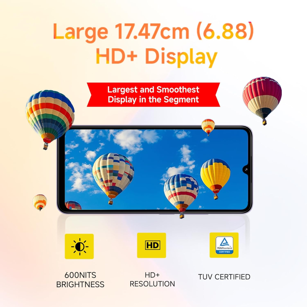 The phone comes with a 6.88-inch HD+ LCD display, which is one of the largest screens in its segment. It is ideal for content consumption, casual gaming, and social media browsing.